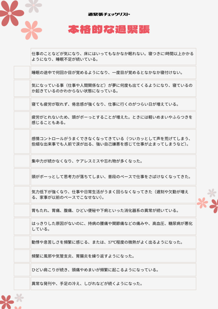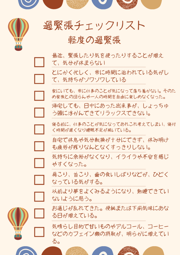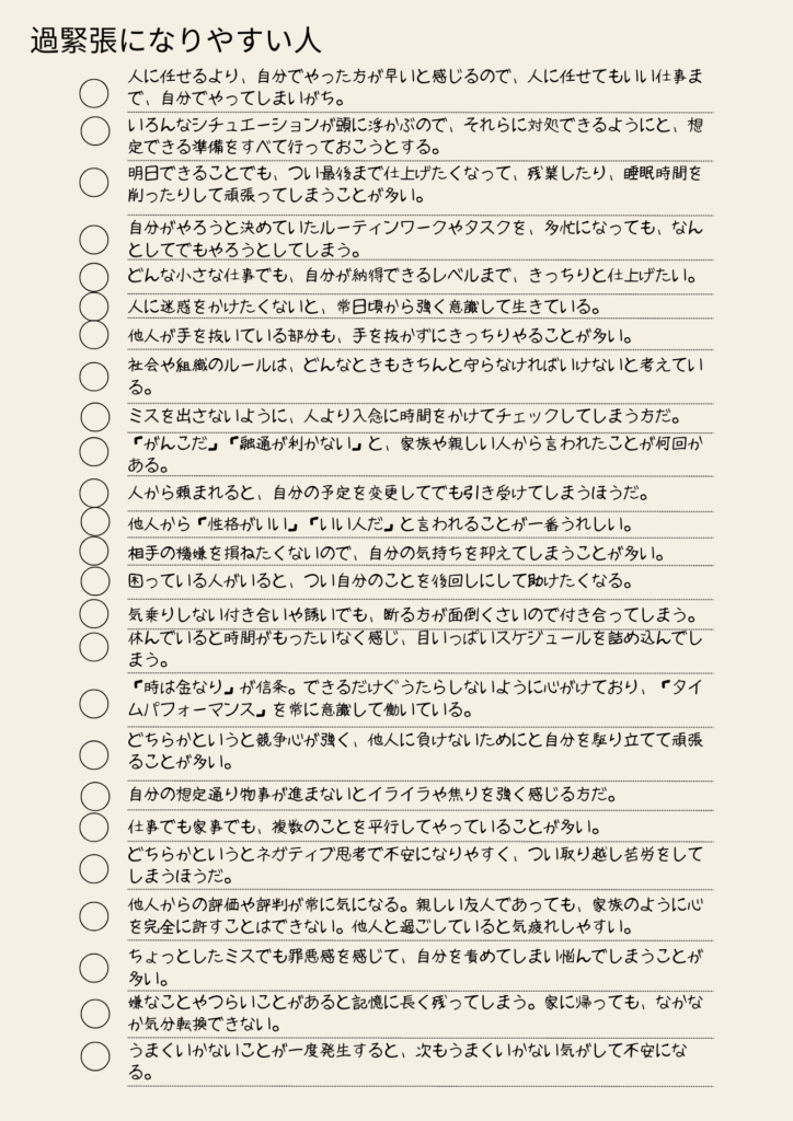 あなたは今過緊張状態ですか?チェックリストでチェックしてみましょう!